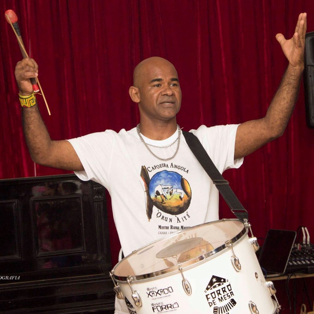 Mestre em Forró e Capoeira Angola com formação e atuação profissional emdanças e manifestações artísticas afrobrasileiras e populares, música e percussão, artesanato e fabricação de instrumentos e produção cultural há mais de 30 anos.